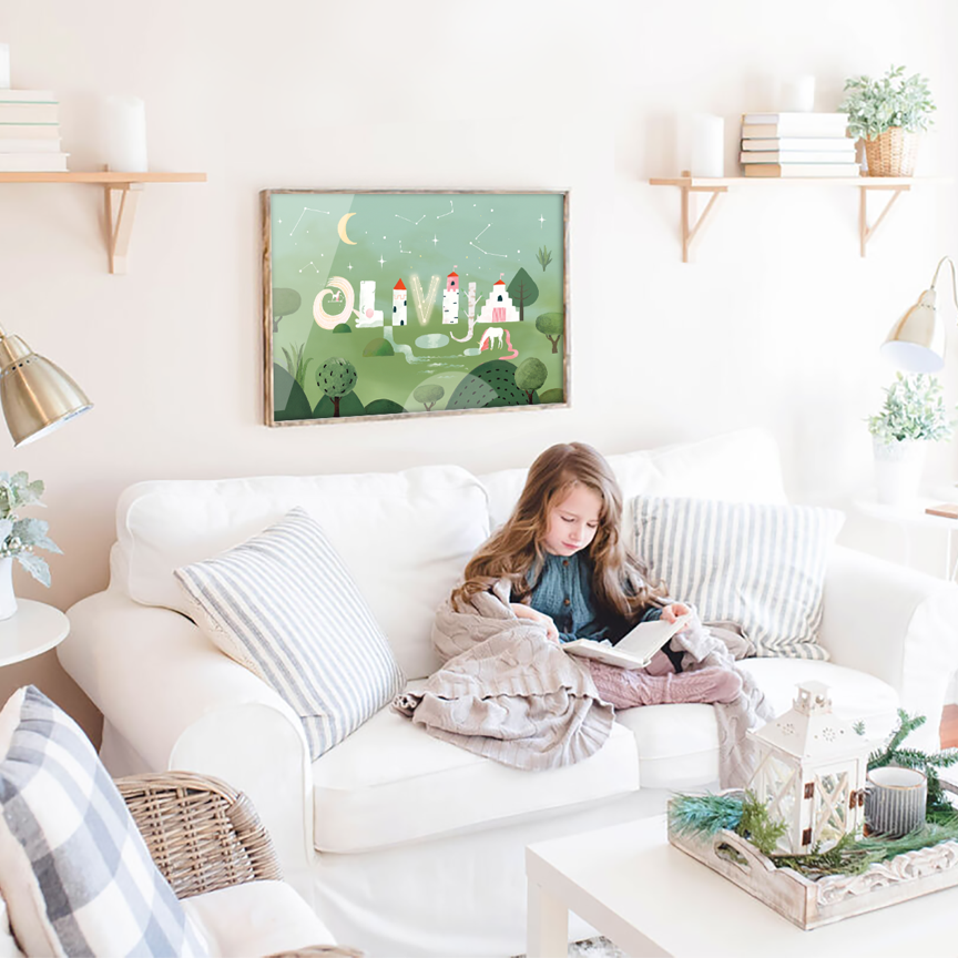 Vsaka ilustracija je skrbno oblikovana, da ustvari unikatno in pravljično kombinacijo – popolnoma prilagojeno izbranemu imenu.